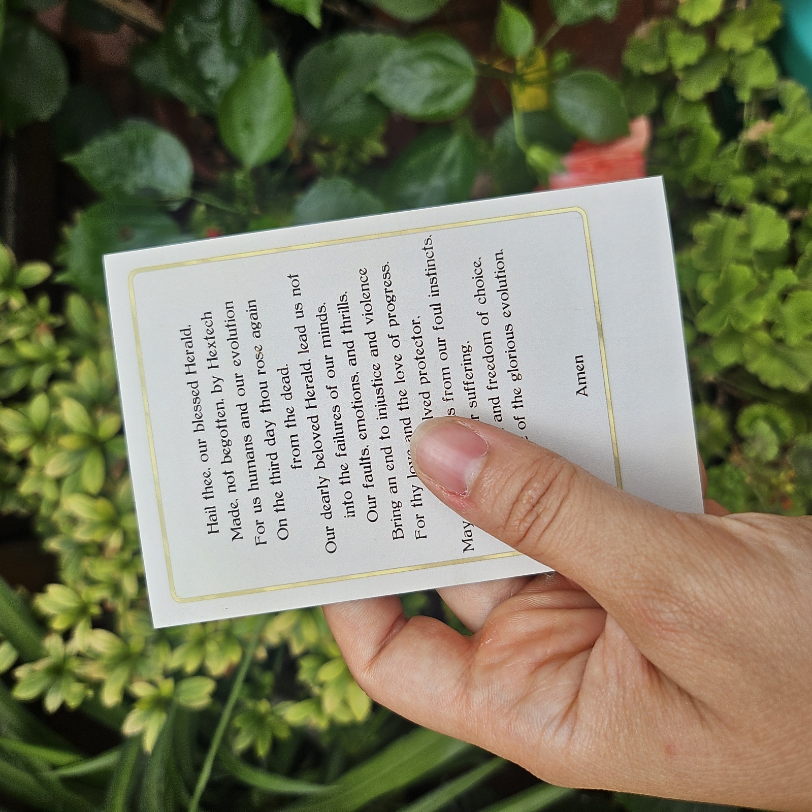 - A5 print, photographic paper, no gold foil and no prayer