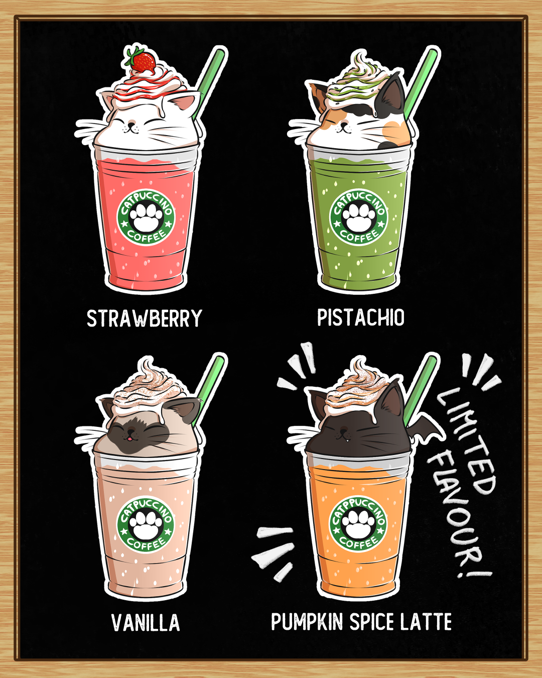 8 unique flavours: chocolate, caramel, matcha, coffee, strawberry, pistachio, vanilla, and the special limited edition pumpkin spice latte!